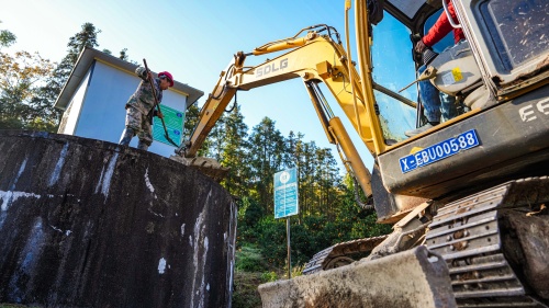 大江新闻讯 (通讯员李煜祖)11月26日,在南丰县三溪乡柏苍村农村饮水工程项目现场,工人们正加紧施工。